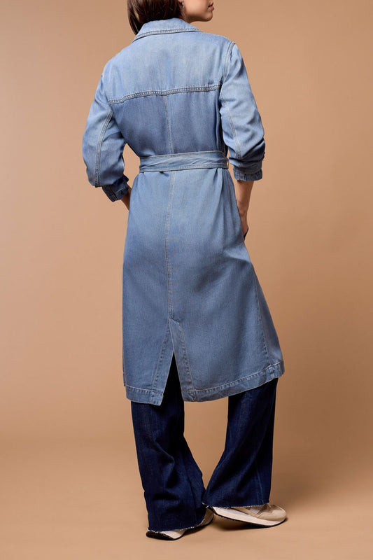 DENIM TRENCH W/REMOVABLE BELT-SOFTBLUE