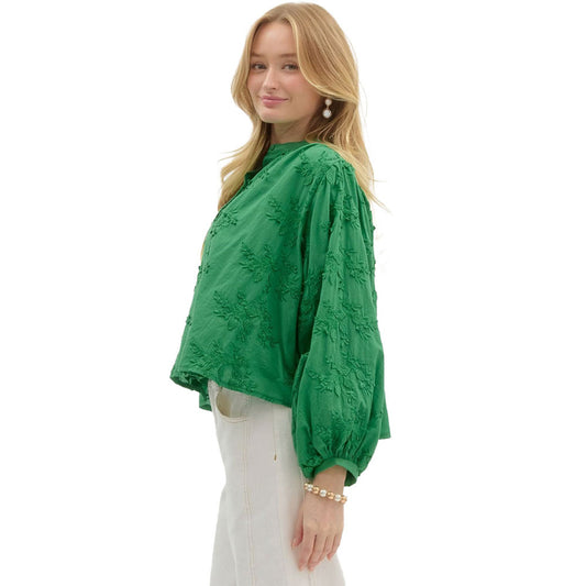 Sold outGreen Embroidered Puff Sleeve Blouse