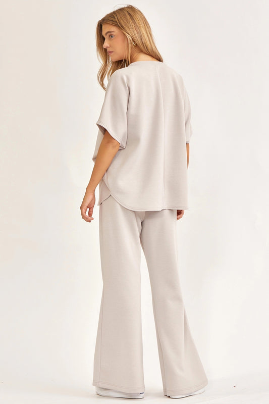 Grey Poncho Top + Bell Bottom Modal Set Trvset-Paris