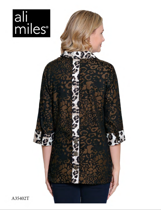 Leopard Printed Woven Contrast Edge Ruffled Blouse
