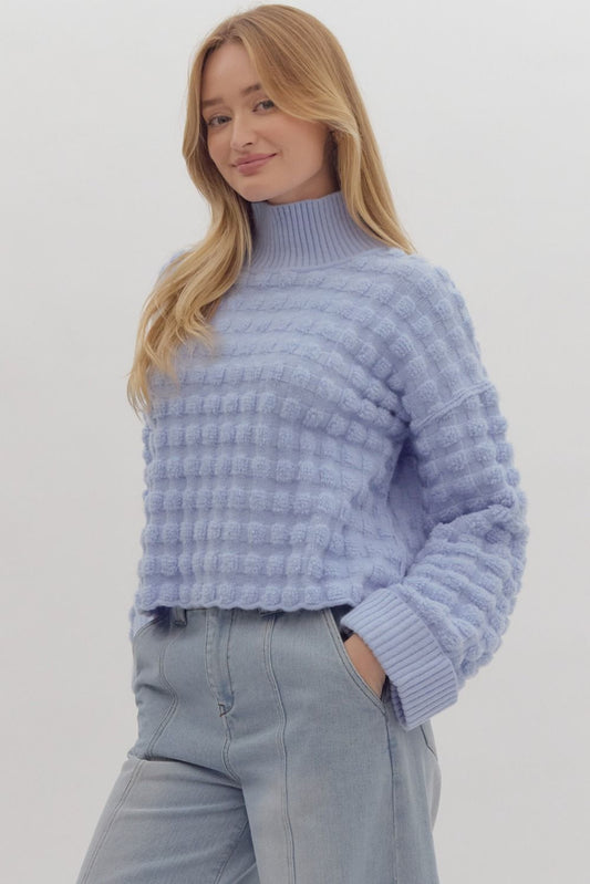 LIGHT BLUE SOLID FRONT ZIPPER RIBBON CARDIGAN