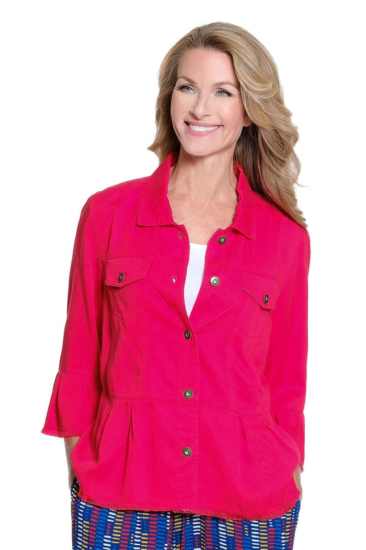 Peplum Jacket with Flounce Sleeves - Fiery Red
