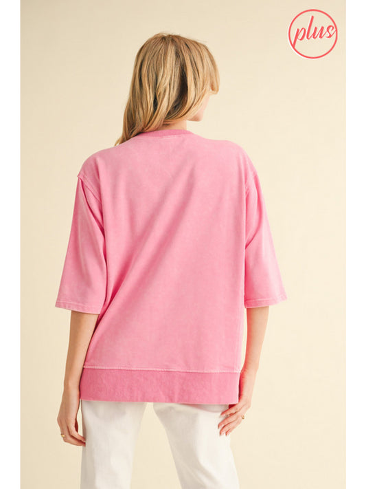 Pink Striped 3/4 Sleeve Drop Shoulder Top
