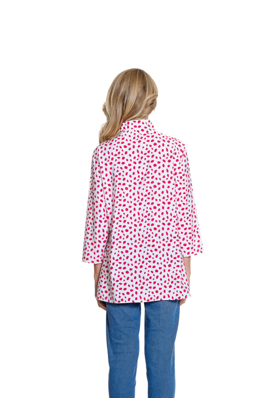 Printed Crinkle Woven Y-Neck Shirt - Fiery Red
