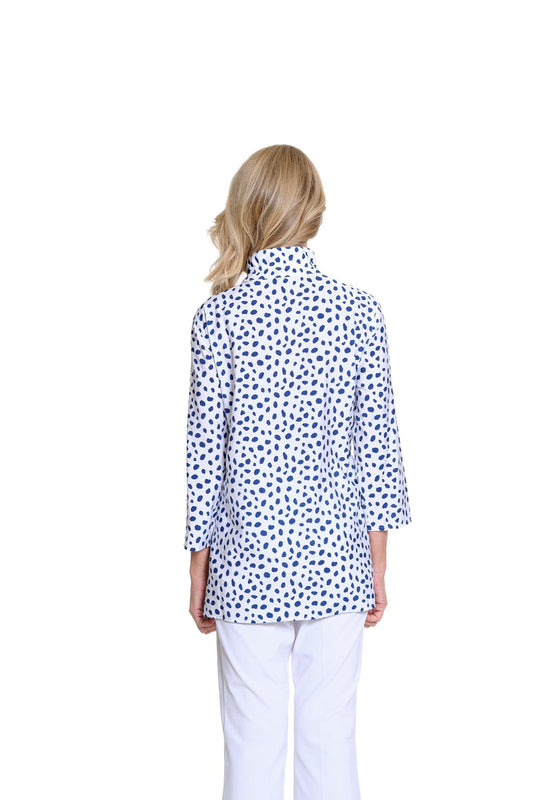 Printed Crinkle Woven Y-Neck Shirt - Rich Navy