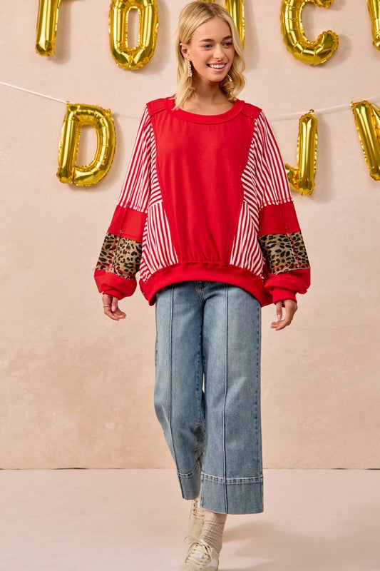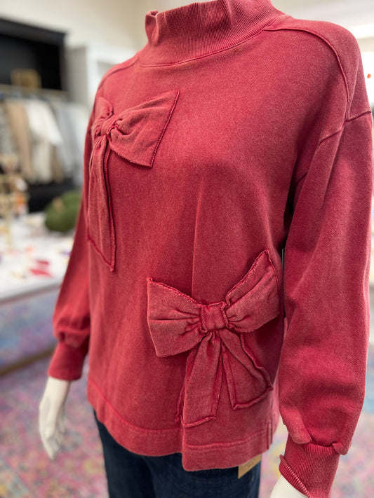 Red Drop shoulder mock neck soft sweater top with side slit detail.