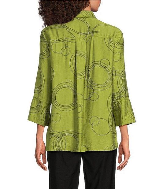 Woven Geometric Print Point Collar 3/4 Sleeve Button-Front Tunic
