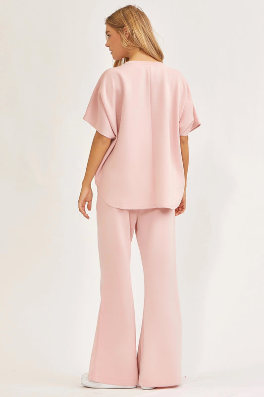 Bright Mauve Woven Airflow V-neck Puff Half Sleeve Top