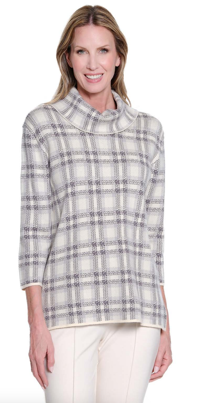 Snow Leopard Drop Shoulder Cowl Neck Sweater